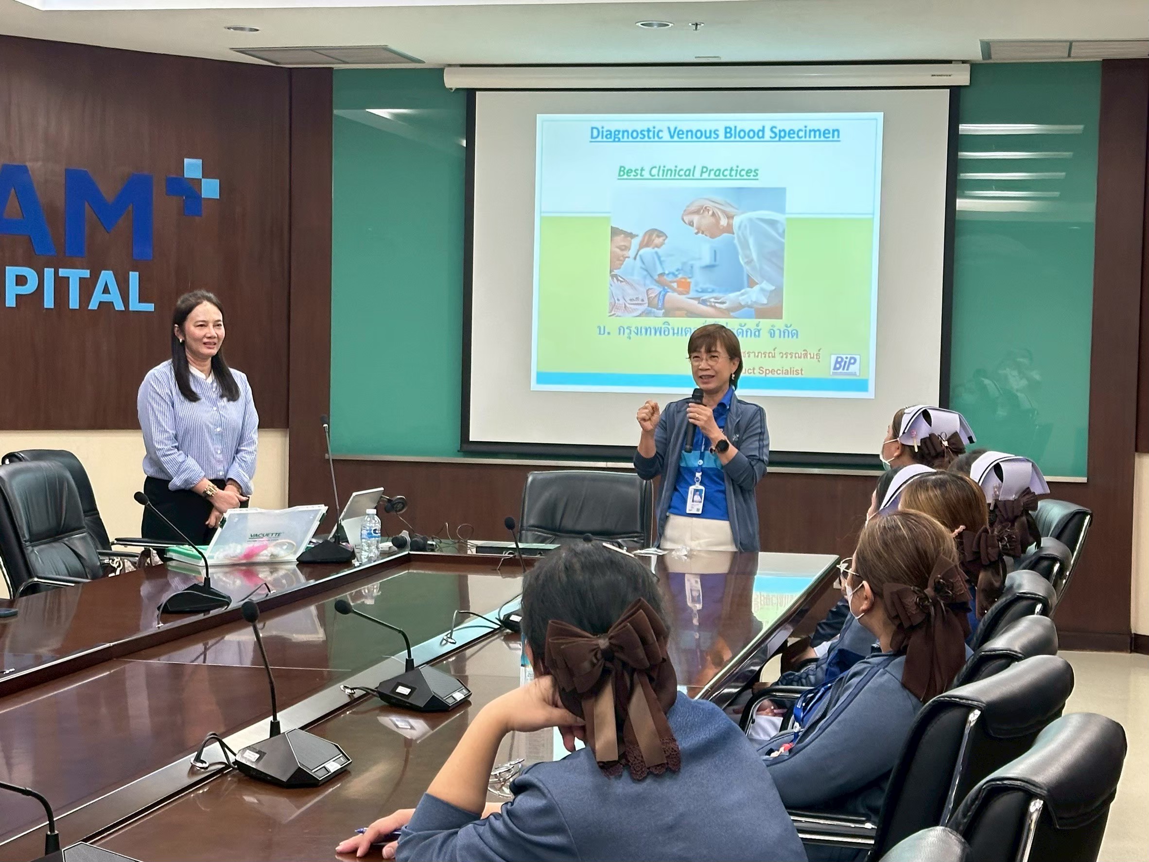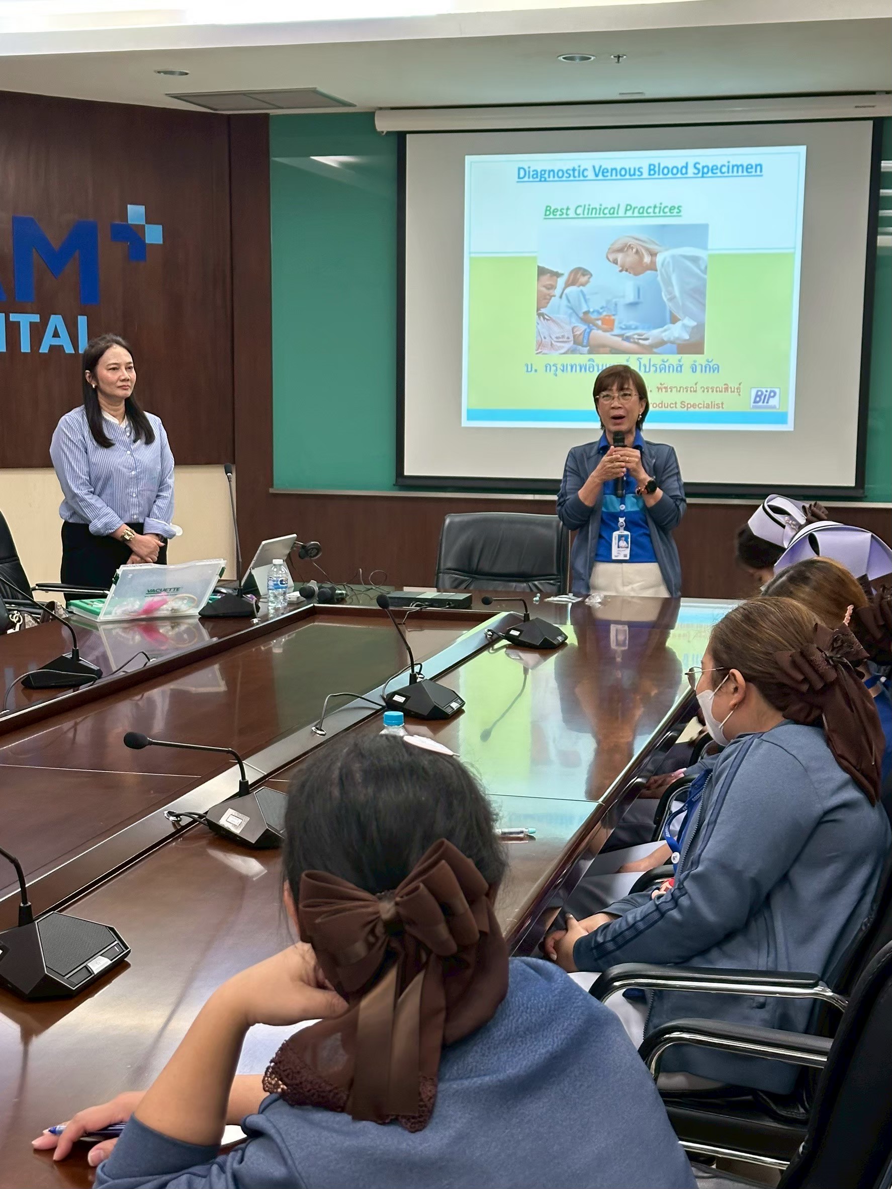 อบรมความรู้เกี่ยวกับการจัดเก็บเลือดและเทคนิคการเจาะเลือดระบบสุญญากาศ ให้กับเจ้าหน้าที่ของ รพ. รามคำแหง 1