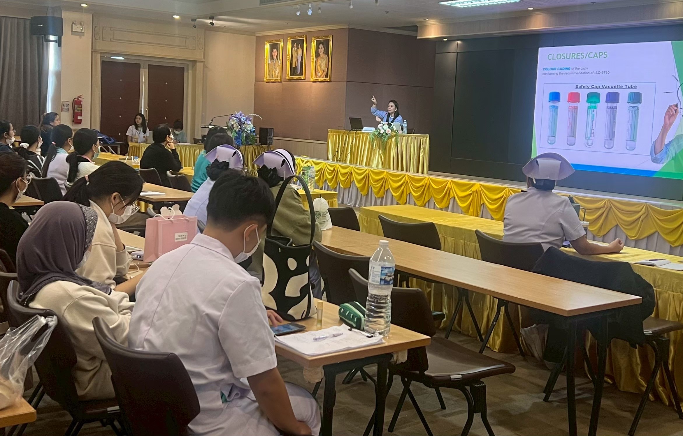 เมื่อวันที่ 23 ก.ค. 2568 คุณพัชราภรณ์ วรรณสินธ์ Product Specialist บริษัท กรุงเทพอินเตอร์โปรดักส์ จำกัด ได้เป็นวิทยากรอบรมความรู้เกี่ยวกับการจัดเก็บเลือดและเทคนิคการเจาะเลือดระบบสุญญากาศ ให้กับเจ้าหน้าที่ของ รพ.พระปกเกล้า จันทบุรี