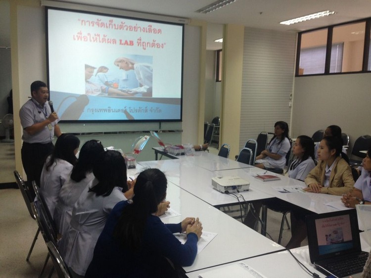 การฝึกอบรมให้ความรู้เกี่ยวกับการจัดเก็บตัวอย่างเลือดเพื่อให้ได้ผล LAB ที่ถูกต้อง ให้โรงพยาบาลบางพลี