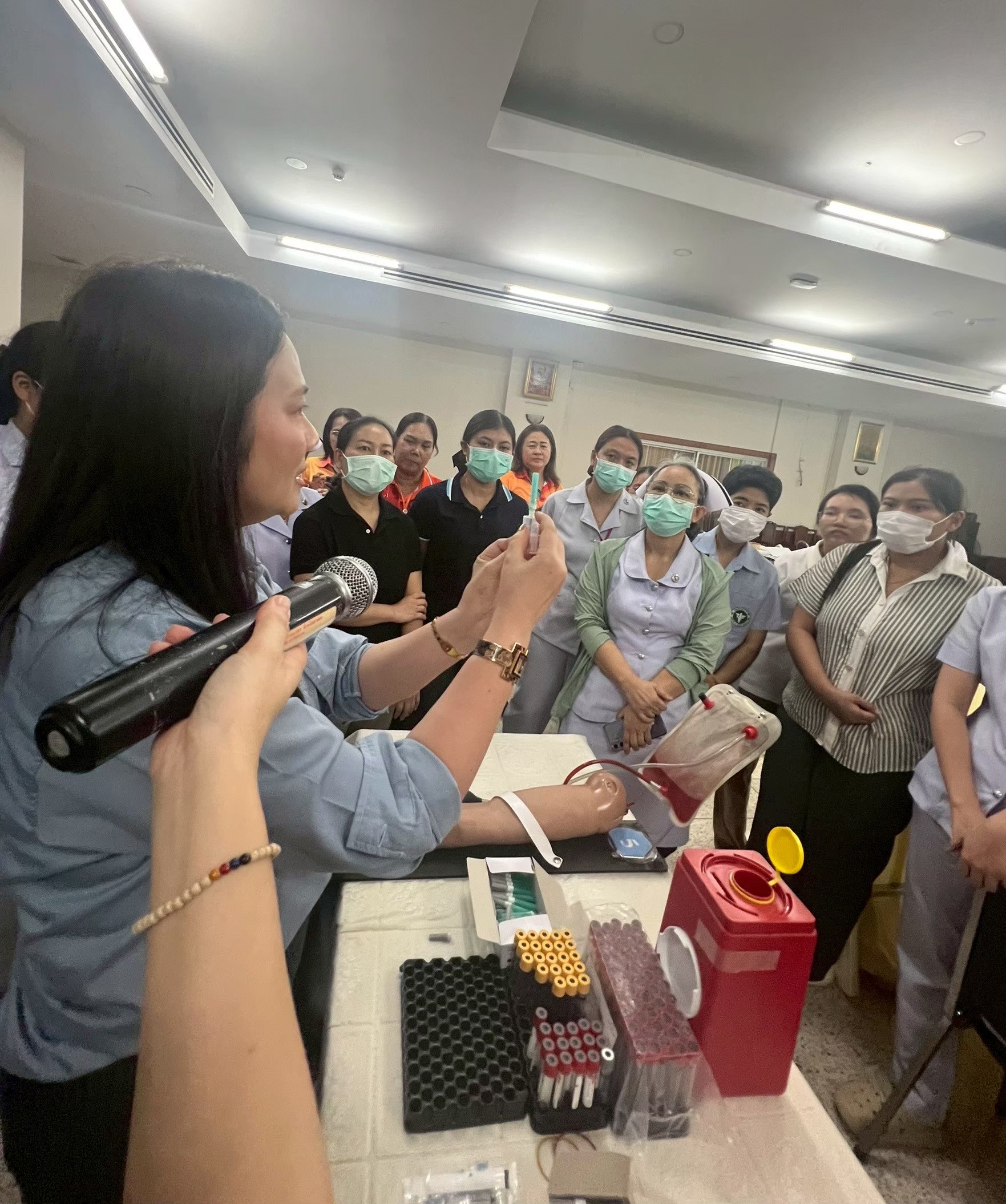 เมื่อวันที่ 14 มิ.ย. 2568 คุณพัชราภรณ์ วรรณสินธ์ Product Specialist บริษัท กรุงเทพอินเตอร์โปรดักส์ จำกัด ได้เป็นวิทยากรอบรมความรู้เกี่ยวกับการจัดเก็บเลือดและเทคนิคการเจาะเลือดระบบสุญญากาศ ให้กับเจ้าหน้าที่ของ รพ.กรุงเทพ ขอนแก่น